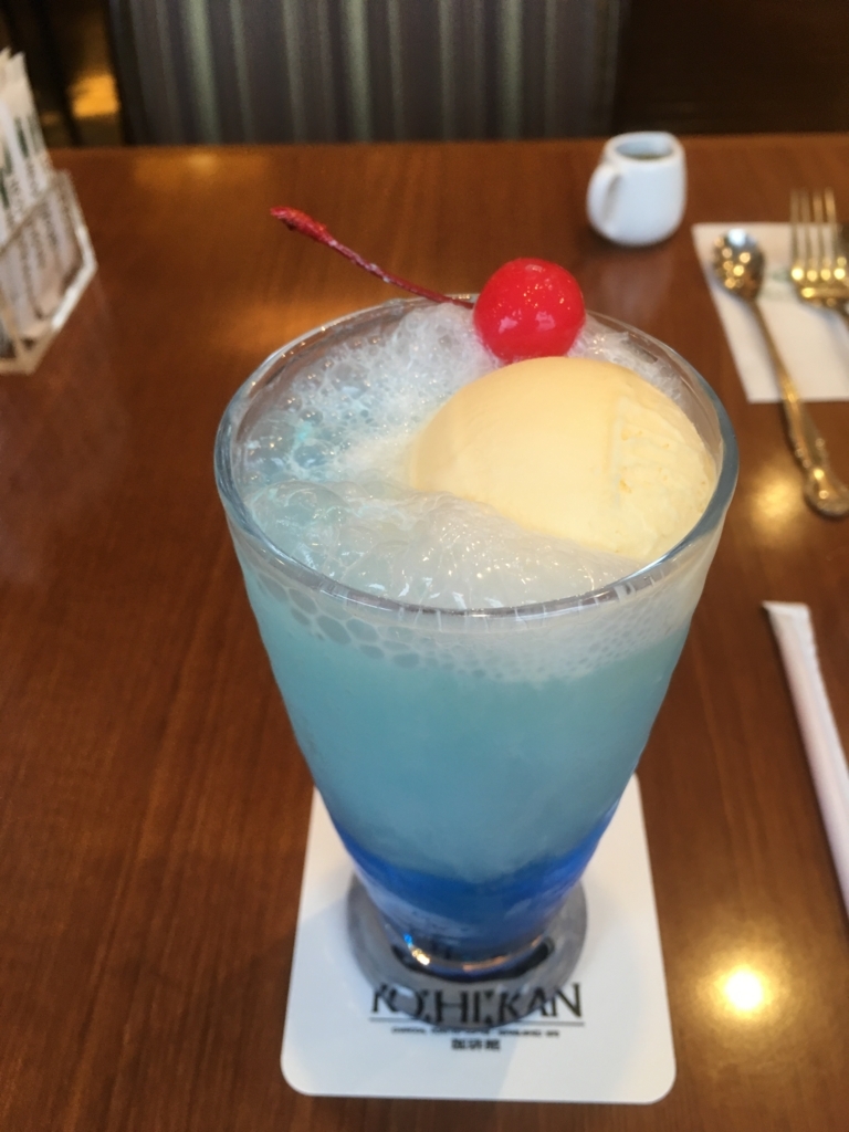 もともとメロンクリームソーダはあるのですが、期間限定じゃないかなと思うのですが、「魅惑のソーダ」として、フランボワーズ味、オレンジ味、ライチ味のがありましてね。どれもキレイだなぁと思ってちょっと悩み、ライチ味を頼んでみました。