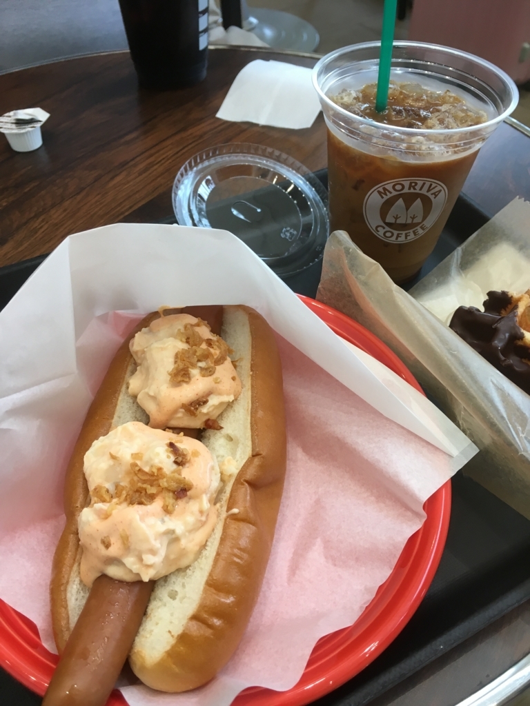 冒頭の写真にある、明太ポテトドッグ、チョコワッフル、ドリンク(私はアイスコーヒー)で590円でした(^^)パパは家でがっつり食べてきたからとアイスコーヒーだけにしてました。